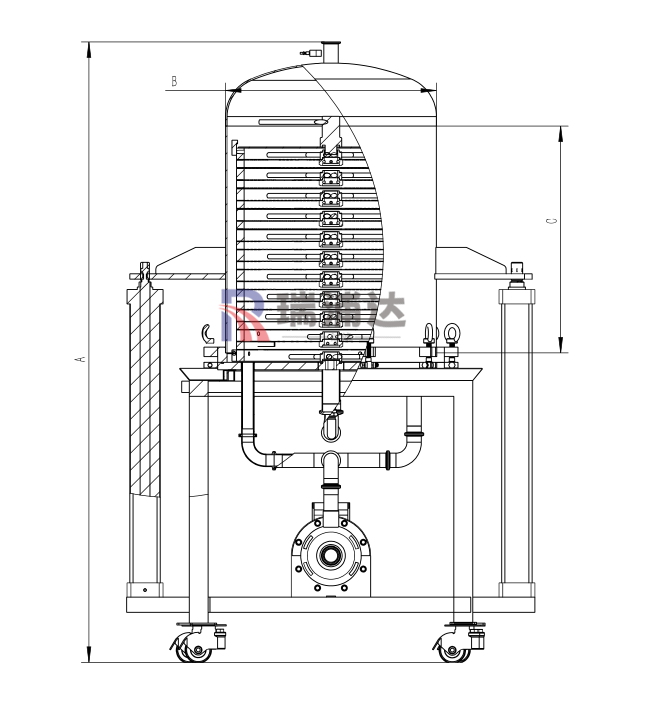RCDF层叠过滤器由多层重叠过滤网板和法兰圈组成,网板均匀密集,保证过滤网板上面的滤膜受力均匀,不易破损。液体从法兰上面的小孔进入经滤膜过滤后排出,达到拦截效果。