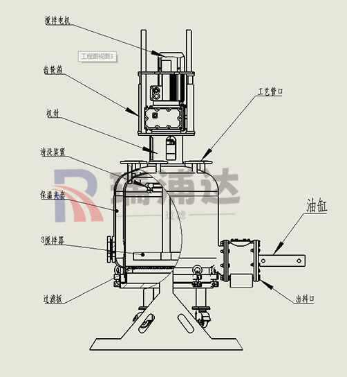 (3)搅拌装置由防爆变频电机、减速机、机械密封、搅拌轴、搅拌桨叶组成。